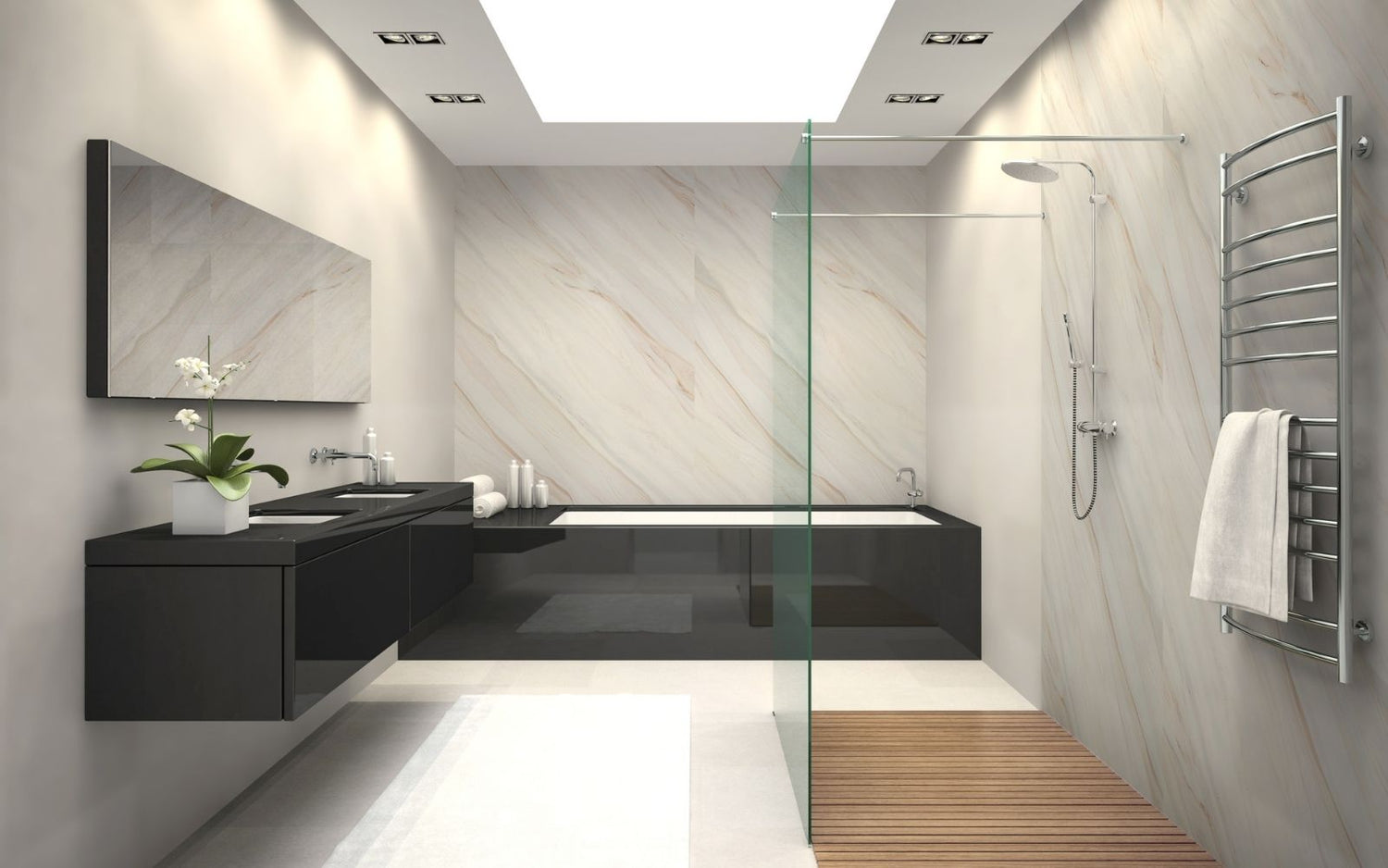 Um unsere Platten mit Dekoren zu versehen, verwenden wir Folien aus der Möbelindustrie. Diese Folien sind extrem hochwertig und liefern auch eine angenehme Haptik. So sind z. B. die Steinstruktur oder Holzmaserung mit den Fingern spürbar. Durch eine lange erprobte Verfahrenstechnik können sich die Dekorfolien nicht von den Platten lösen. Hierauf geben wir eine lebenslange Garantie.