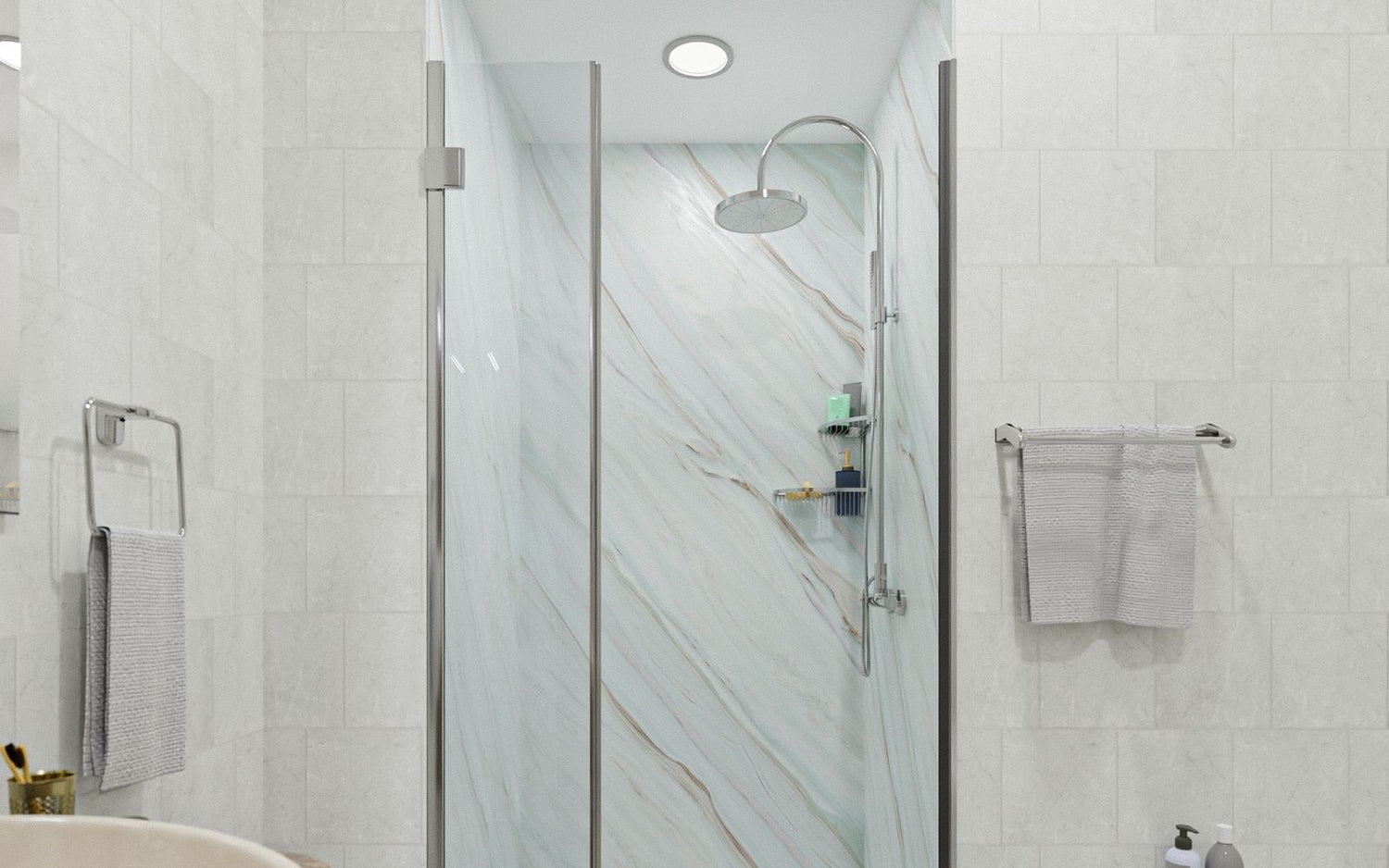 Bei einer Ecklösung können 2 Platten einfach über Eck aneinander gesetzt werden. Die Ecke wird mit Silikon abgedichtet. Zum Abdichten eignet sich der Ottoseal S125 hervorragend.